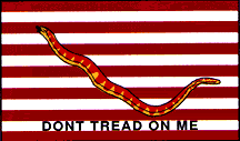 with the First Navy Jack (a rattlesnake, superimposed across 13 horizontal alternating red and white stripes with the motto "don't tread on me.")